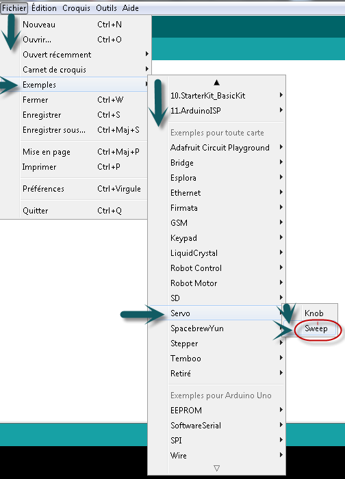 Fichier -> Exemples -> Servo ->Knob