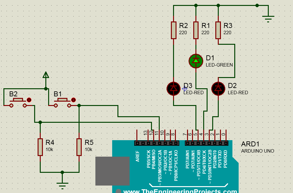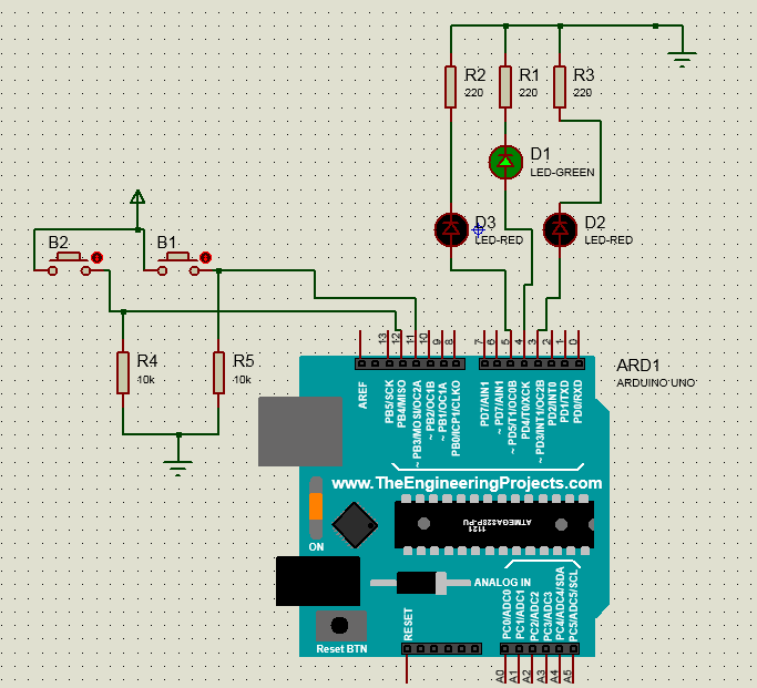 في هذه الدّارة في جزئها الأوّل سنعتمد على الأزرار الضاغطة للتحكّم في إضاءة الصمامات المشعّة