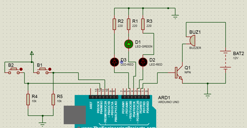 في هذا الجزء سنضيف مكوّن جرس كهربائي(BUZZER) كإشارة سمعية للمستعمل