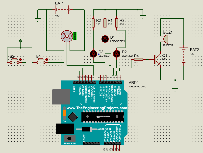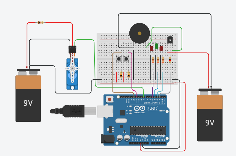 بالنسبة للبرمجة تضاف متغيّر جديد (pinBuz) لحفظ منفذ الجرس مثال المنفذ 2