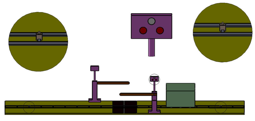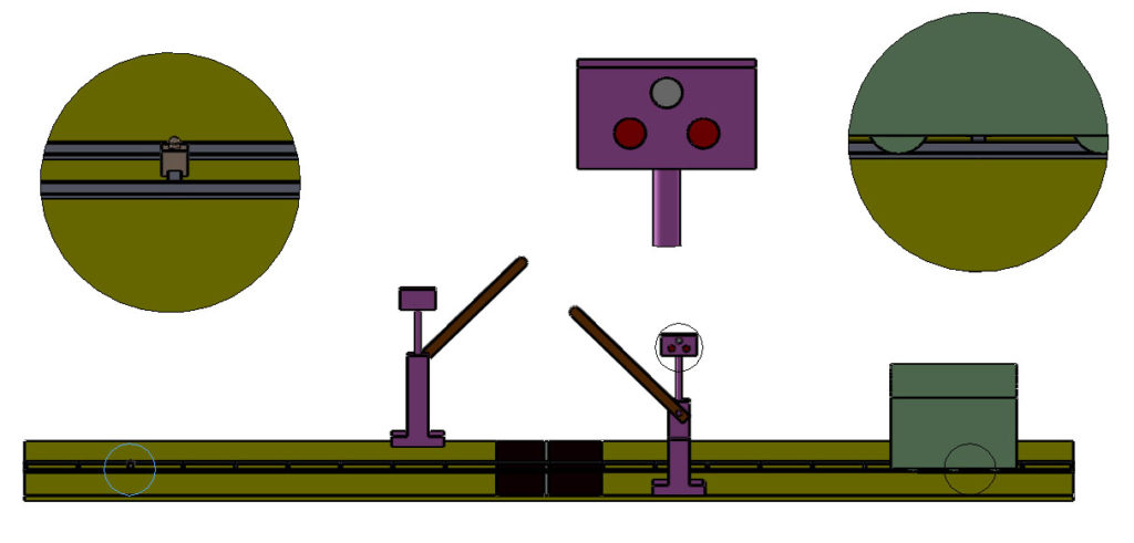 يحتوي مشروع حاجز القطار على زرّبن ضاغطين (على اليمين و على اليسار) وهي خاصة بالقطار لضغط عليها و 3 مصابيح لتنبيه المارّة و حاجز لقطع الطريق