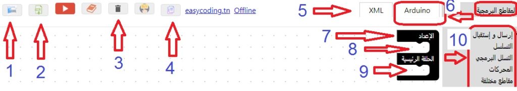 و الموقع الذي سنستعمله هو BlocklyDuino و الذي يتميّز بالسهولة و يحتوي على لغة العربيّة.