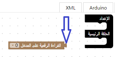 – قراءة الرقميّة على مدخل …. سيقرأ القيمة 1 إذا كان مرتفع (5 فولط) و0 إذا كان منخفض (سيقرأ 0)