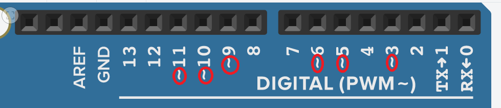 لإخراج تيّار تماثلي على بعض منافذ الرقميّة التي هي 3 و 5 و 6 و 9 و 10 و 11